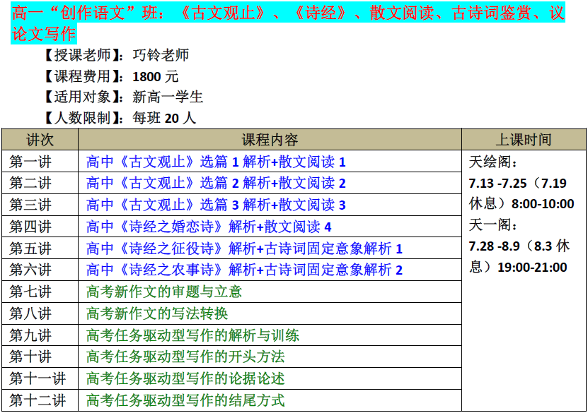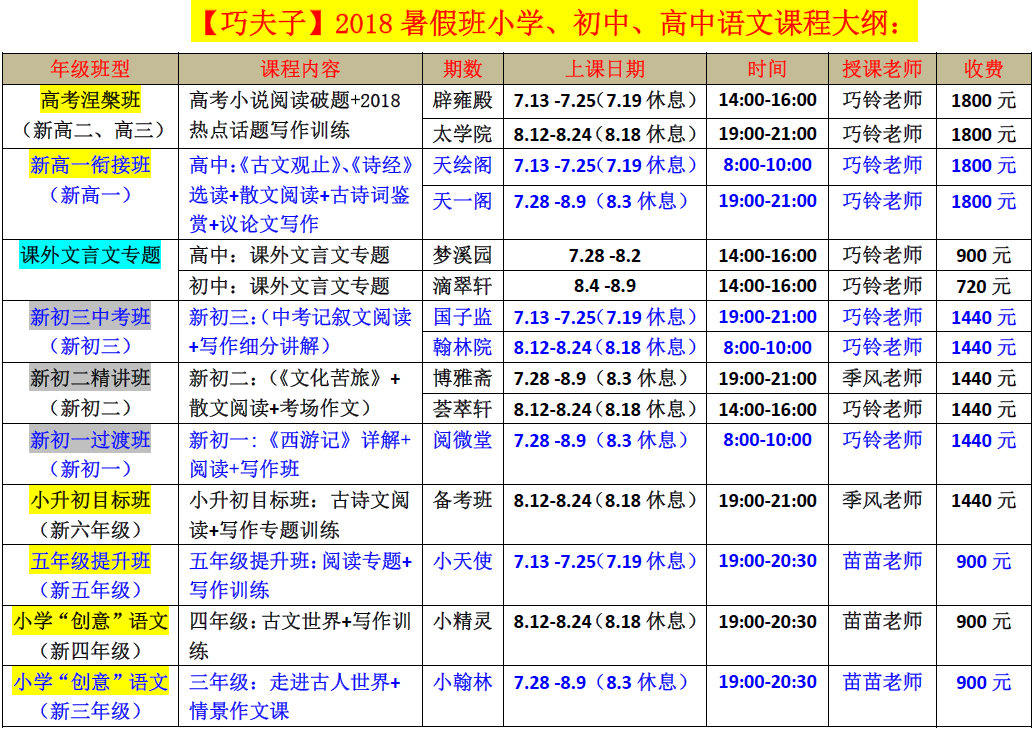 巧夫子致力于学生的灵性开发,运用智慧提高语文成绩和人生境界。我们秉承儒释道的传统文化,追求学语文找“源头”的思维,从本源上把握学语文的精髓,精准切实提高学生的语文成绩和素养。此次暑假班,针对小学、初中、高中各个年级的学员设计衔接过渡课程,通过系统的课程设置及专业的教学质量,共同打造独特的语文教育品牌。