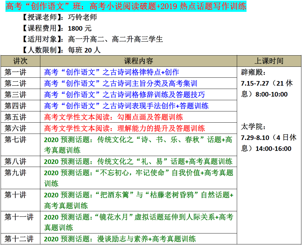 巧夫子致力于学生的灵性开发,运用智慧提高语文成绩和人生境界。我们秉承儒释道的传统文化,追求学语文找“源头”的思维,从本源上把握学语文的精髓,精准切实提高学生的语文成绩和素养。此次暑假班,针对小学、初中、高中各个年级的学员设计衔接过渡课程,通过系统的课程设置及专业的教学质量,共同打造独特的语文教育品牌。