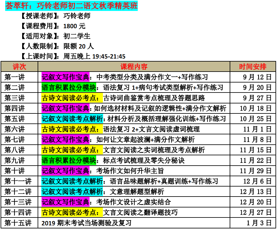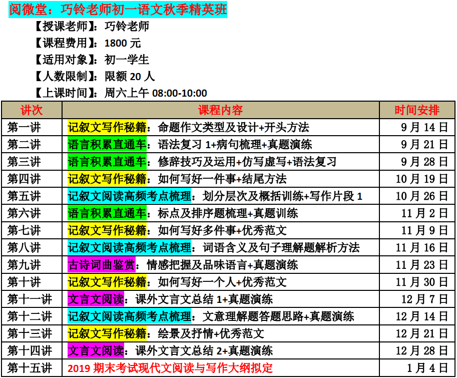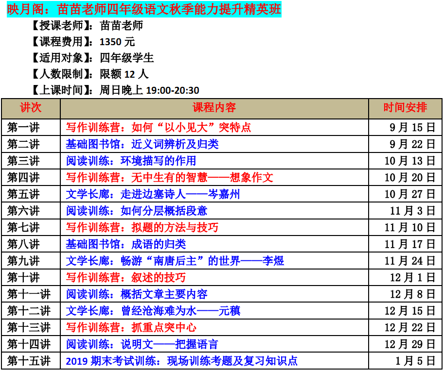 【巧夫子网校】2019-20学年秋季语文培训班招生中