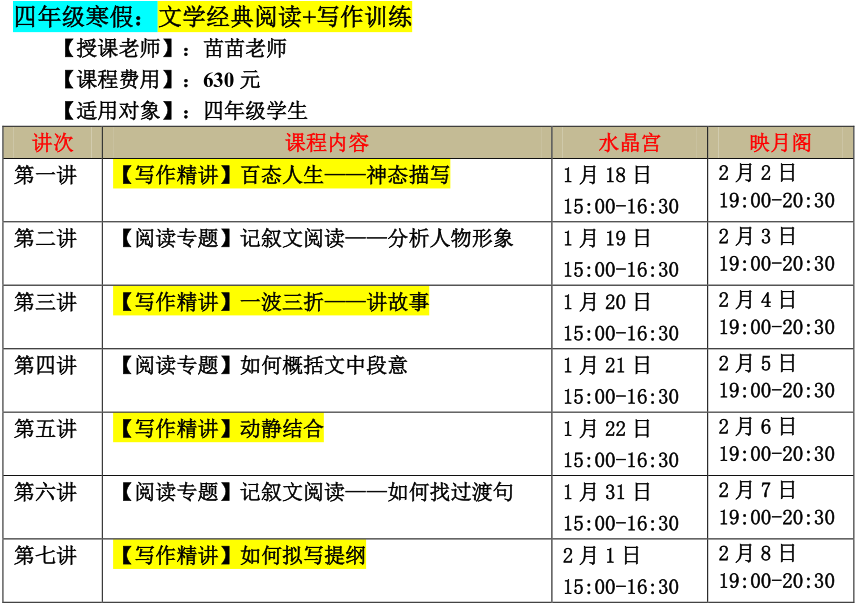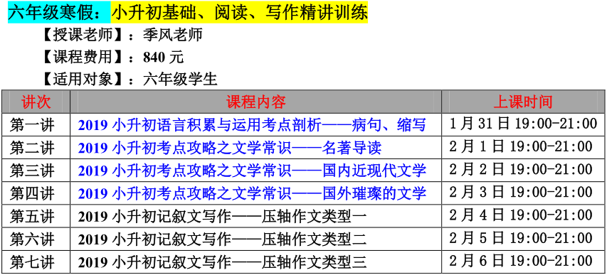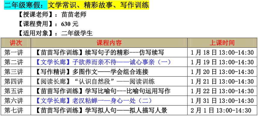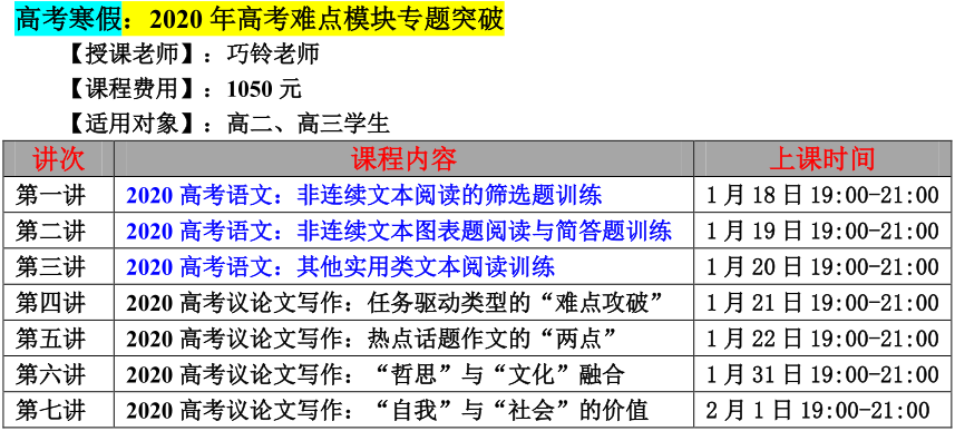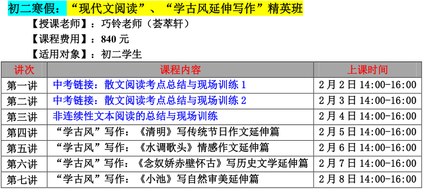 【巧夫子网校】2020年寒假班语文读写营详细安排