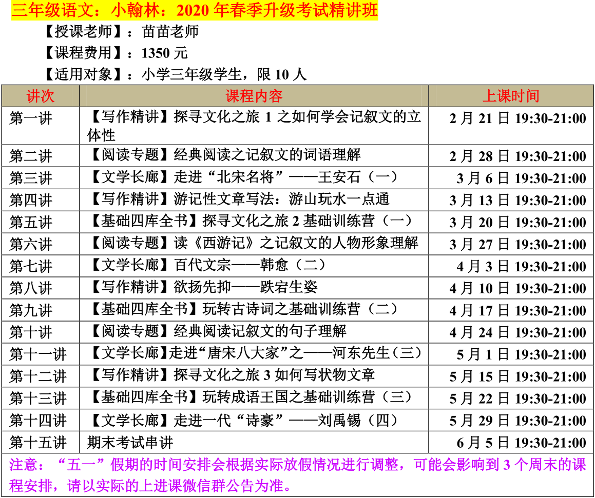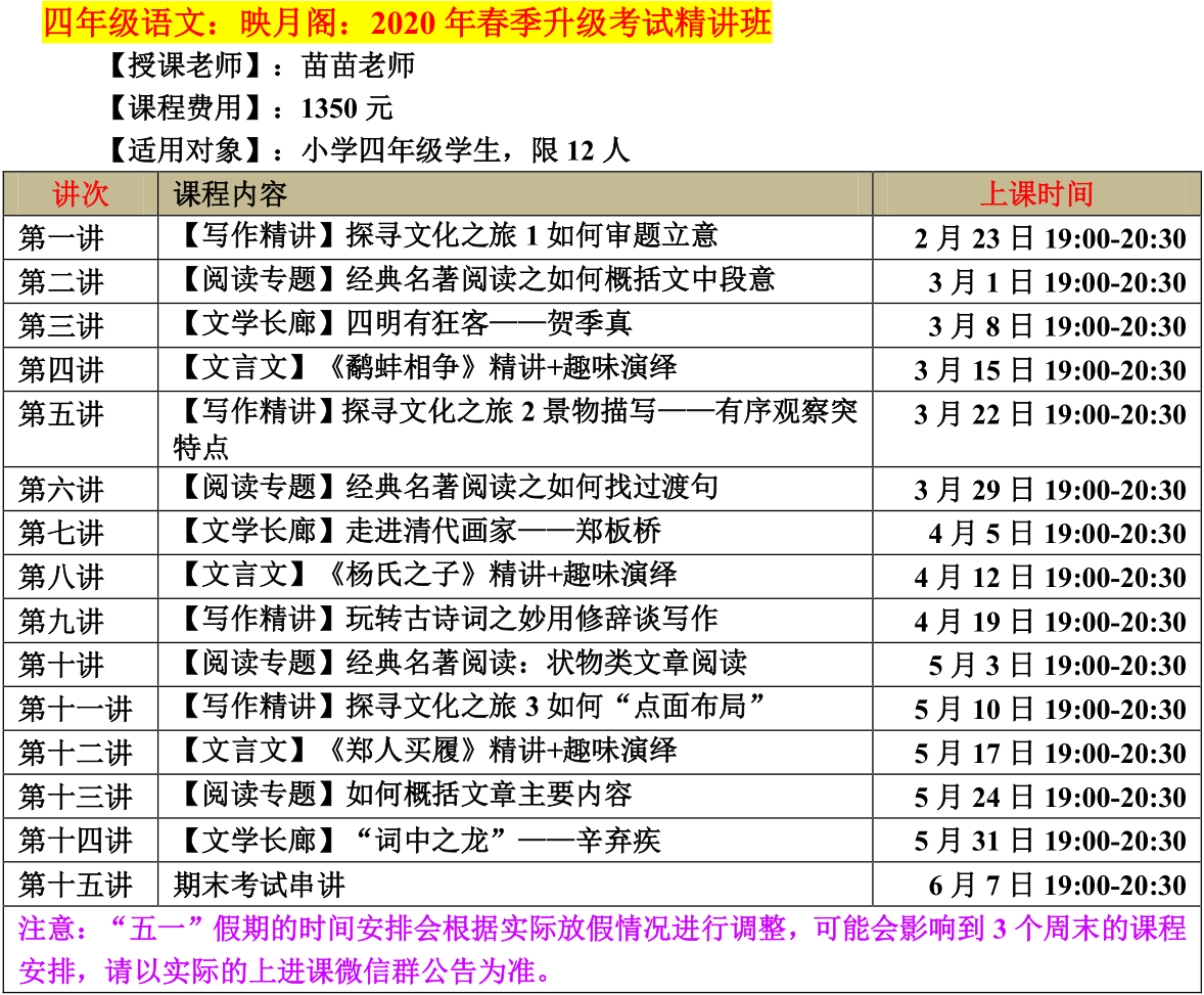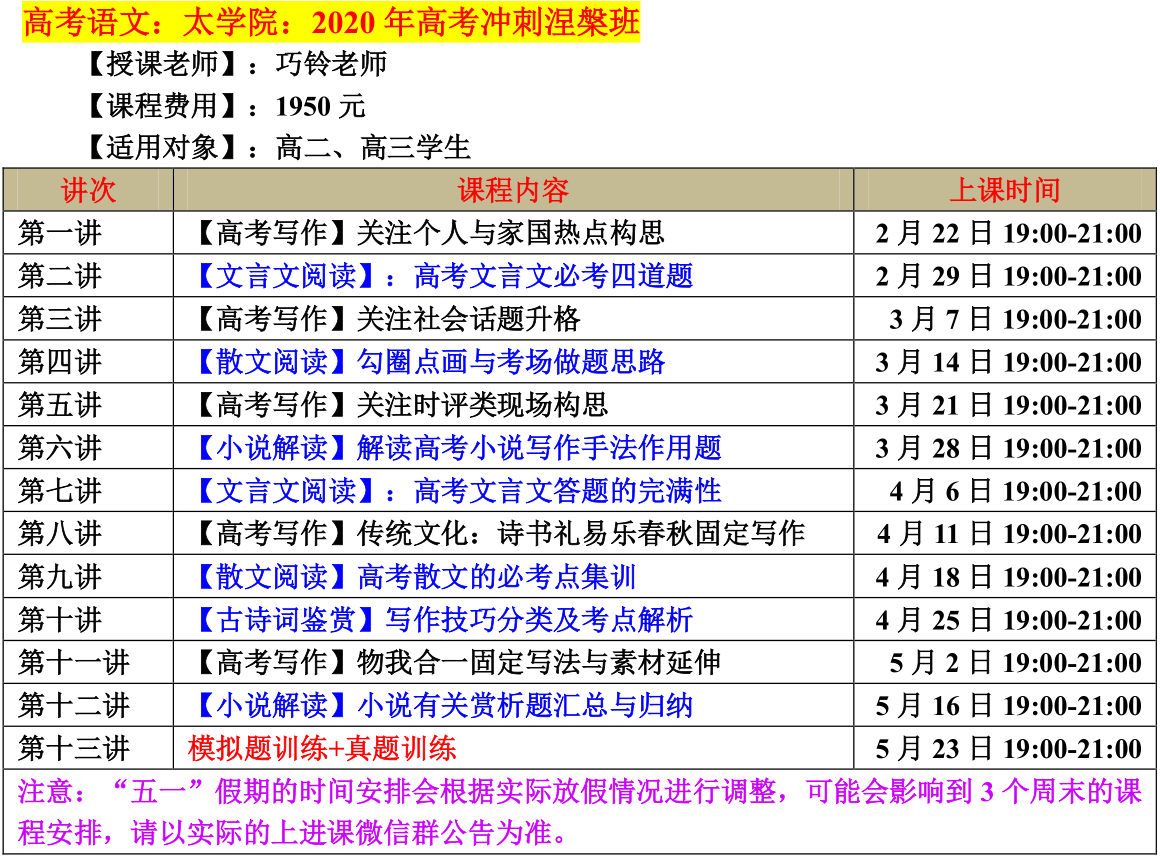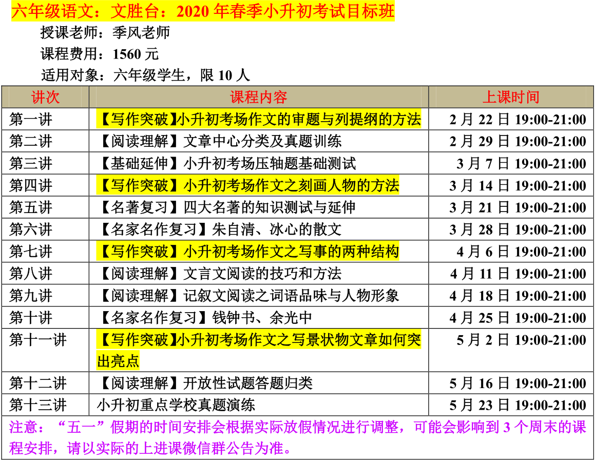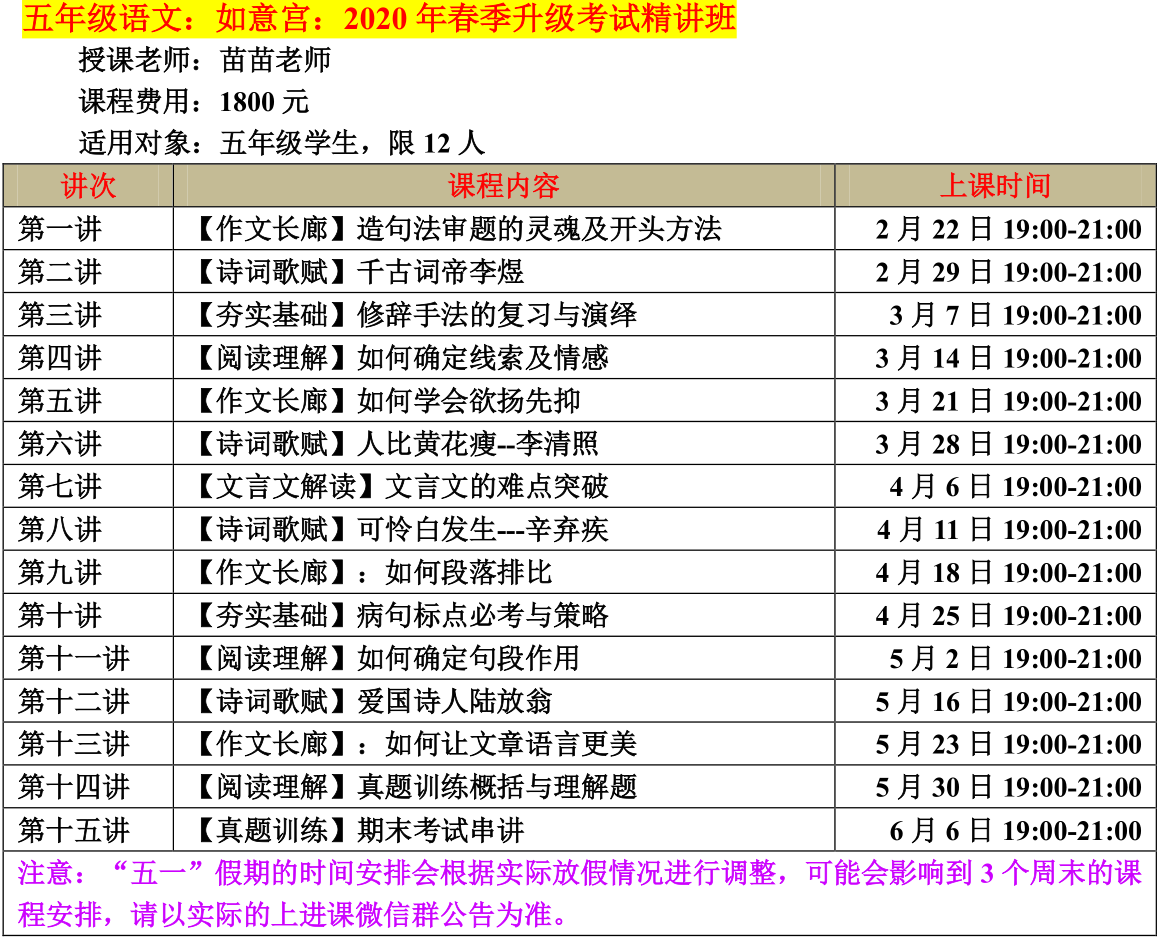 【巧夫子网校】2020学年春季语文直播课程大纲