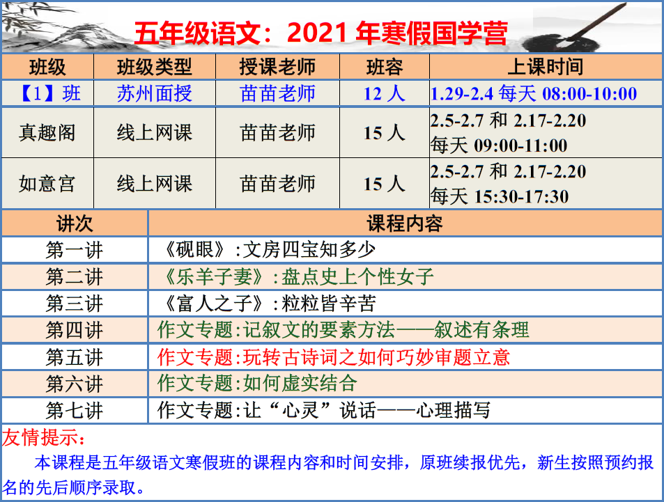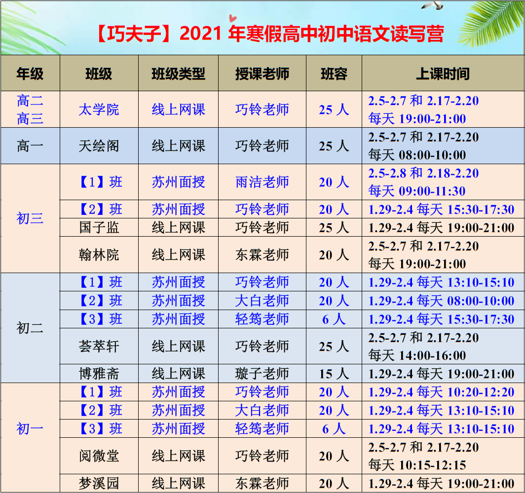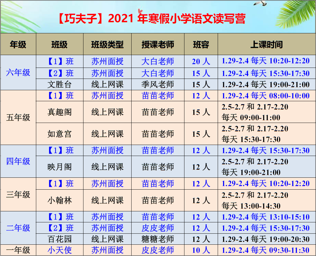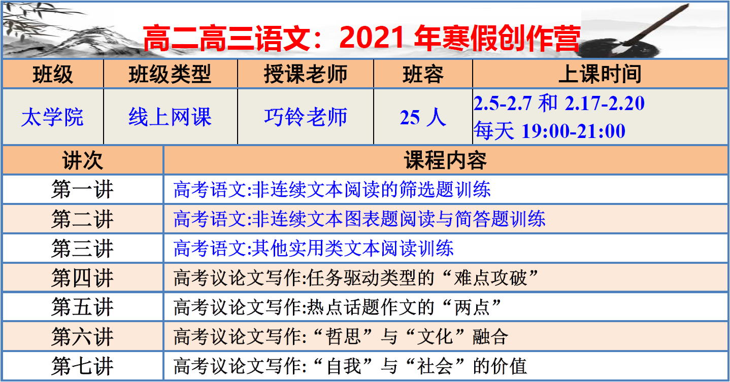 【巧夫子·网校】2021寒假班各年级语文直播课程大纲