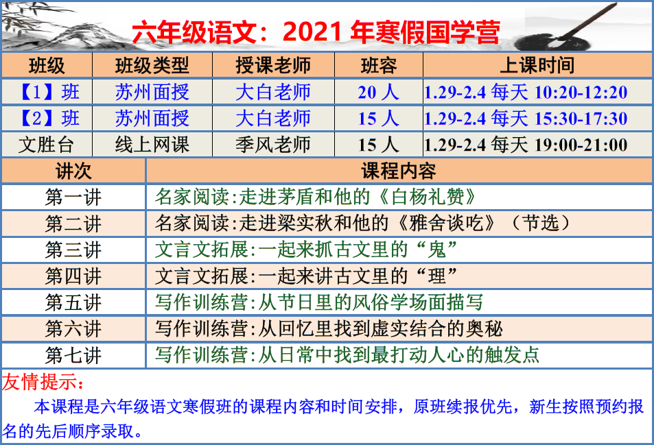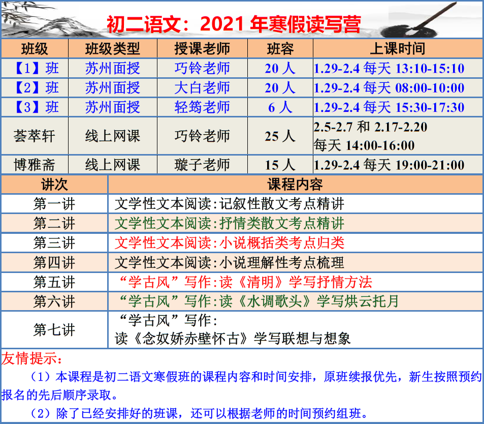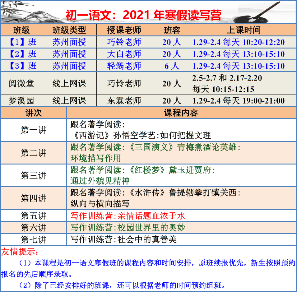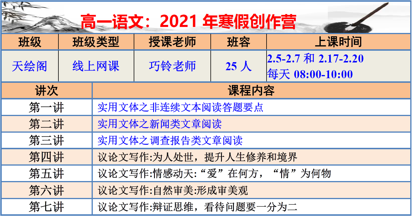 【巧夫子·网校】2021寒假班各年级语文直播课程大纲
