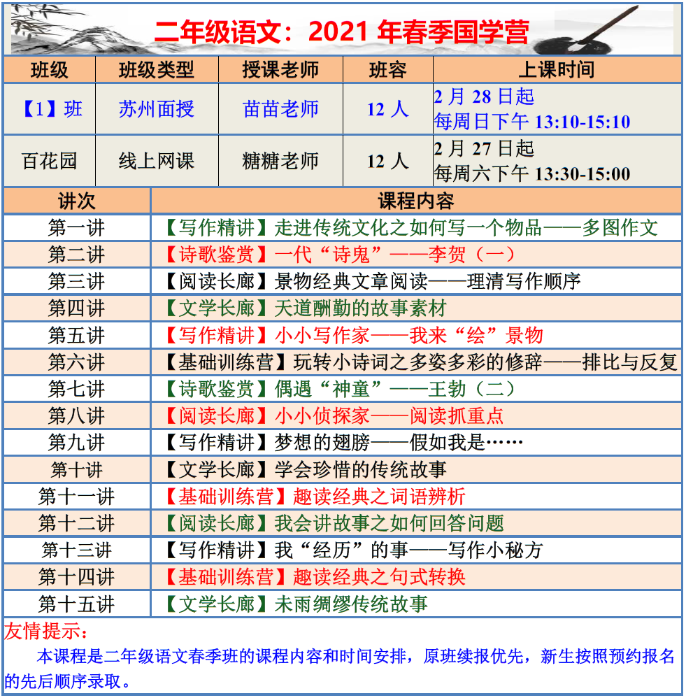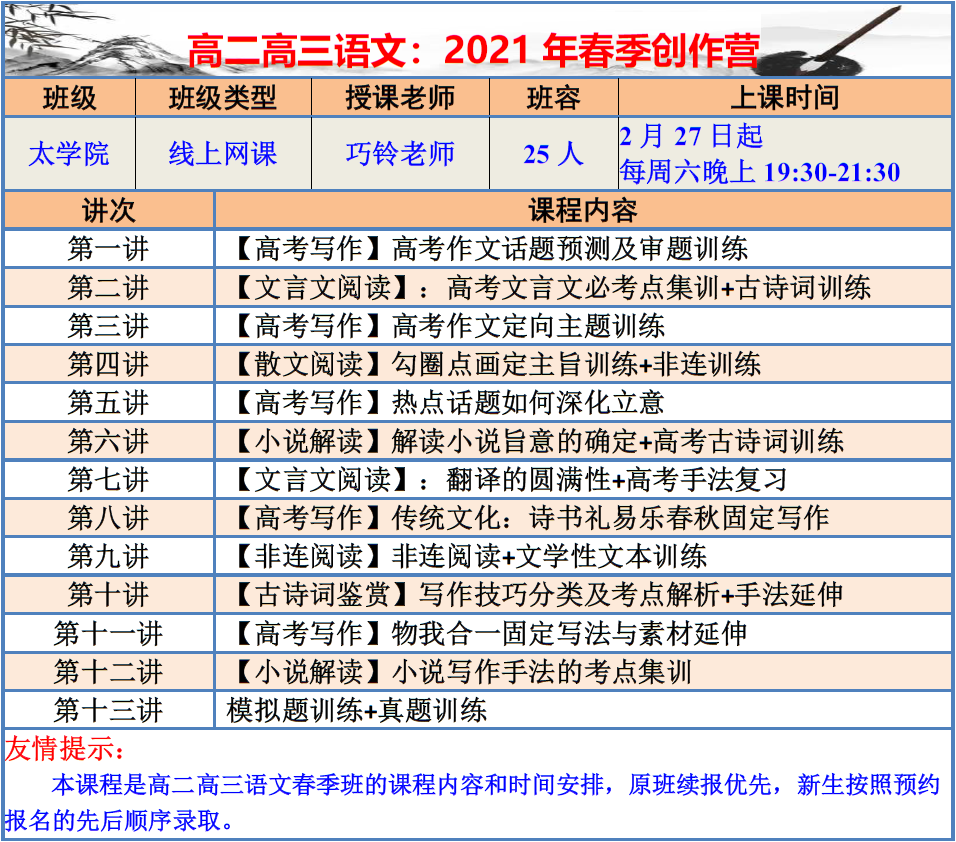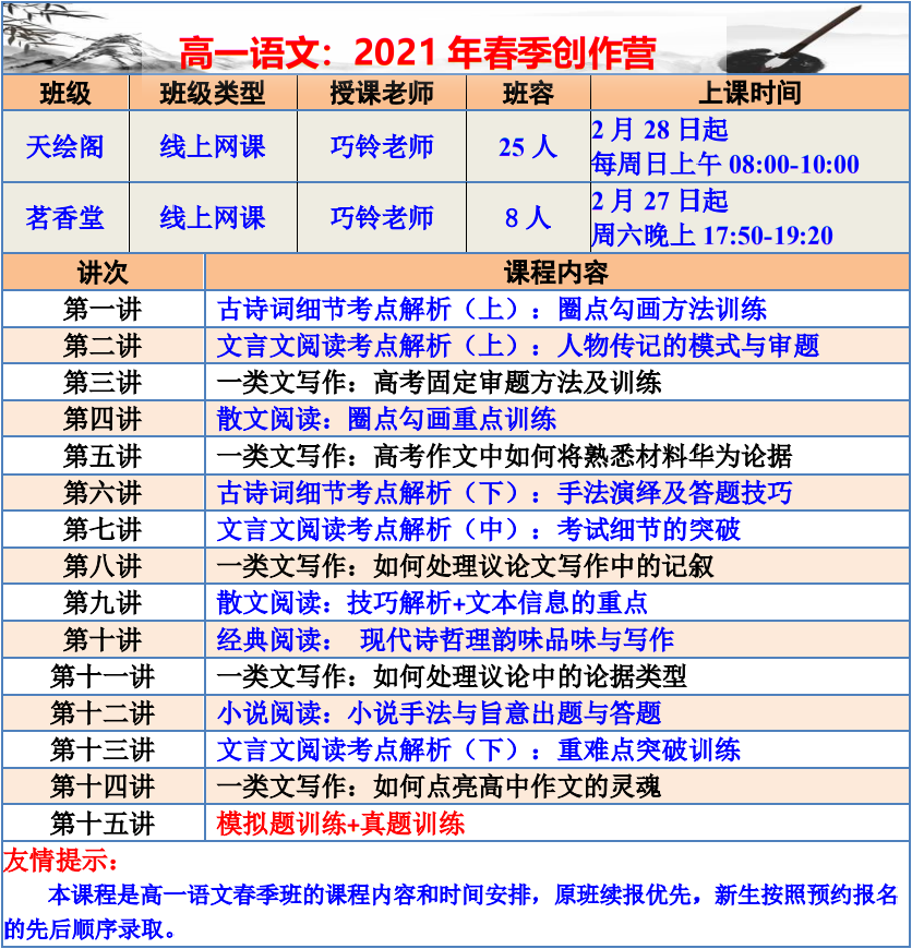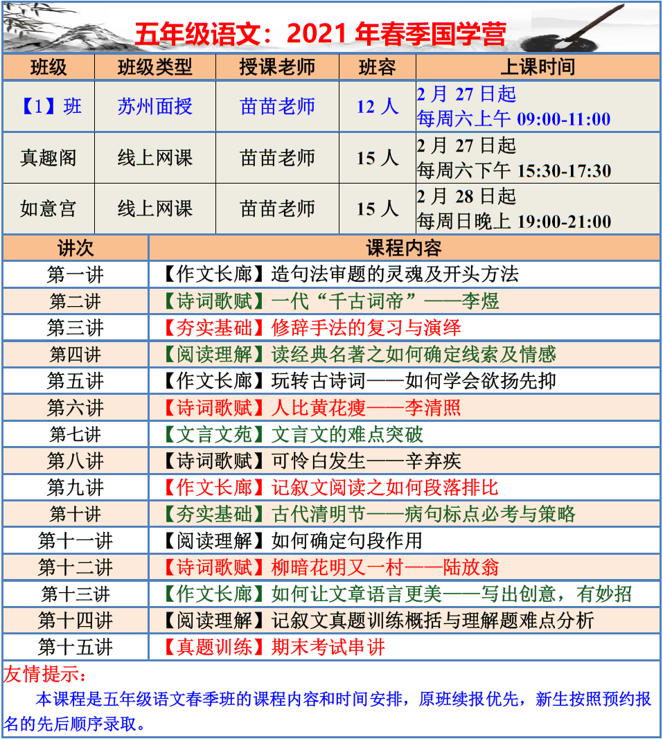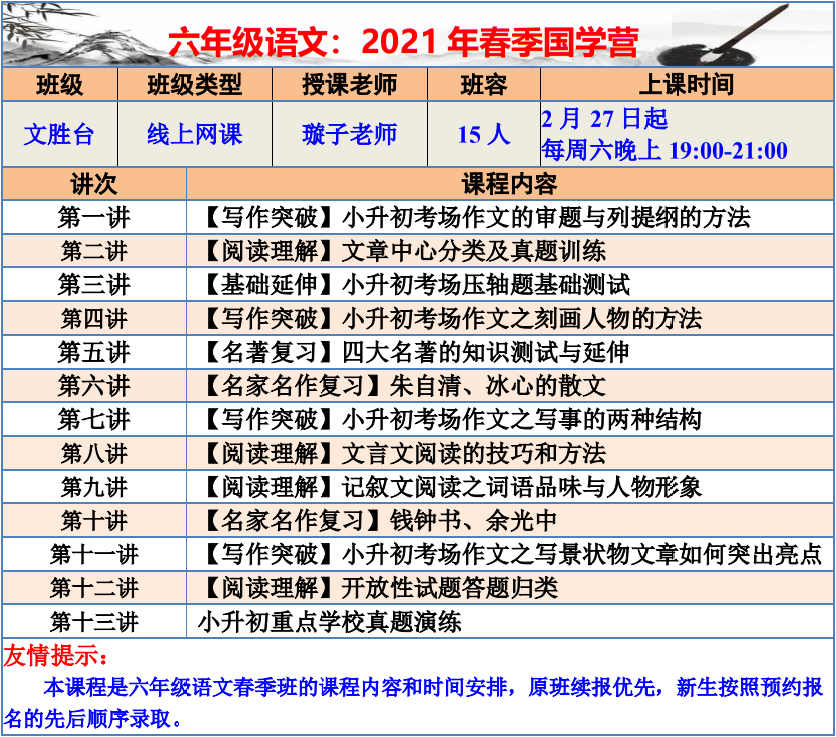 【巧夫子·网校】2021春季班各年级语文直播课程大纲