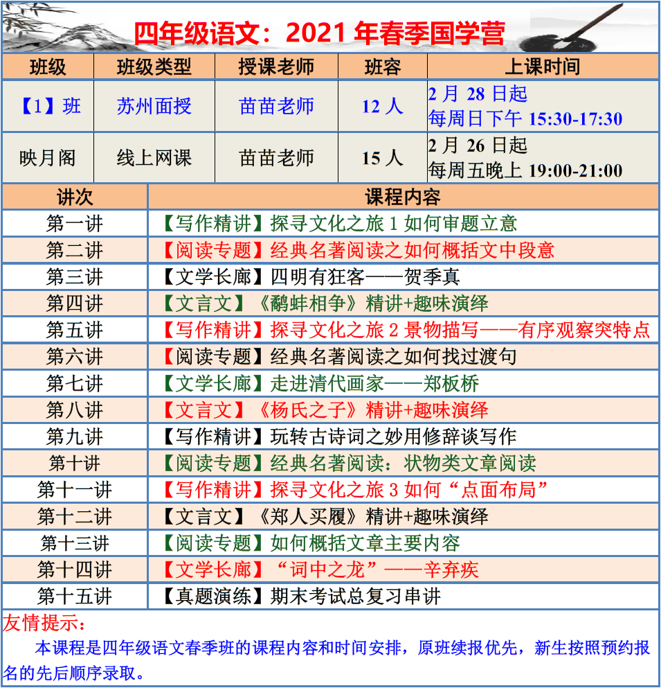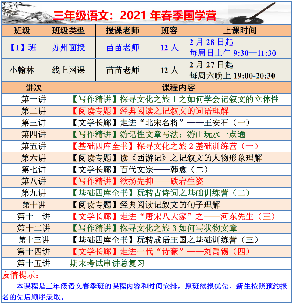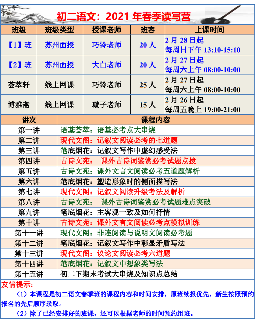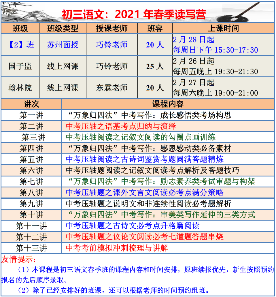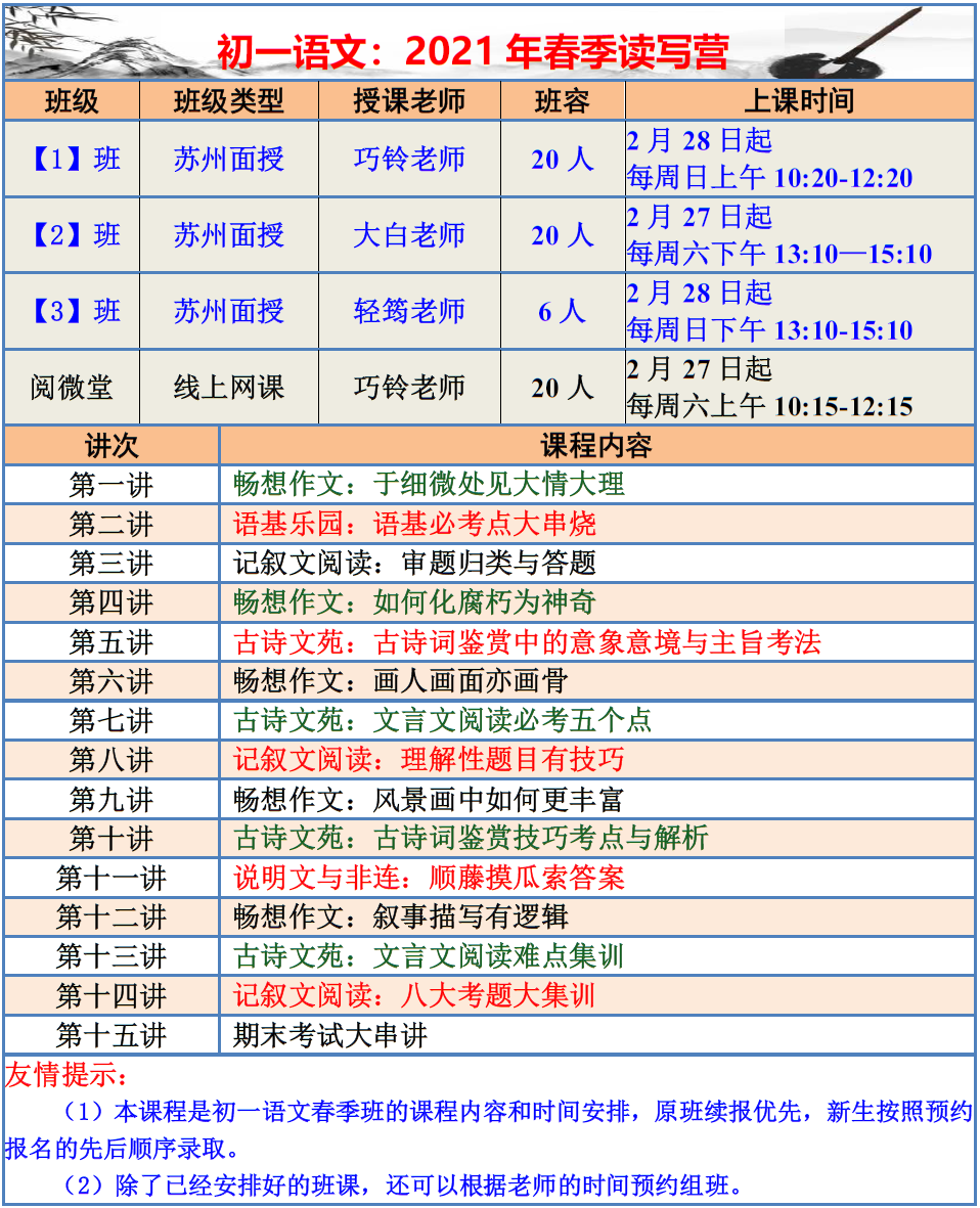 【巧夫子·网校】2021春季班各年级语文直播课程大纲