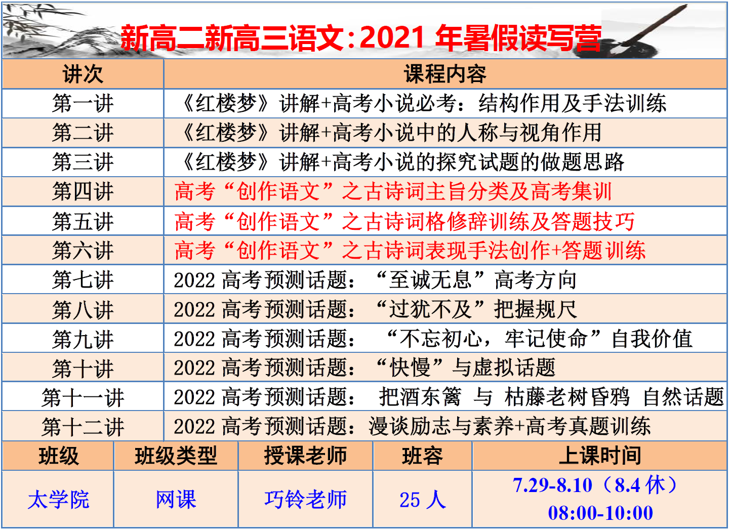 【巧夫子·网校】2021年暑假班详细课程安排