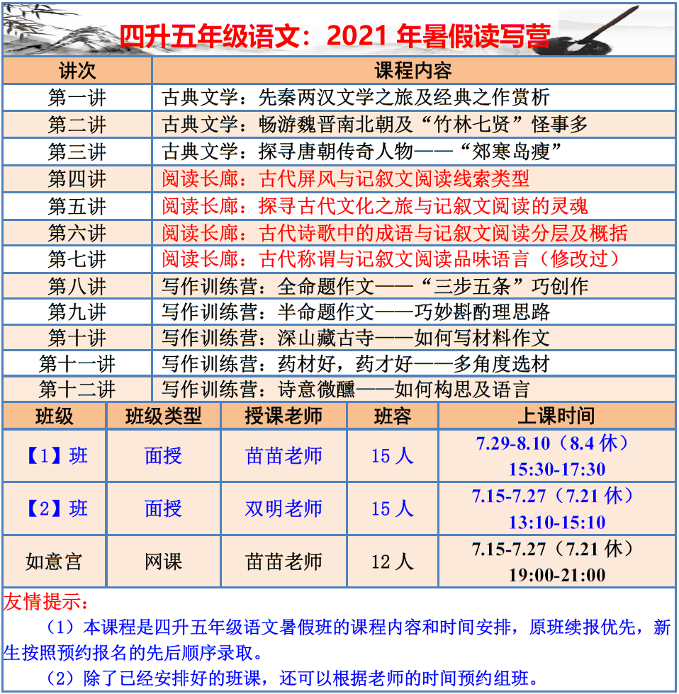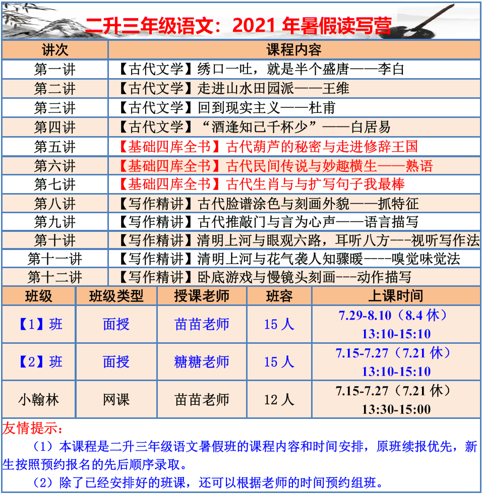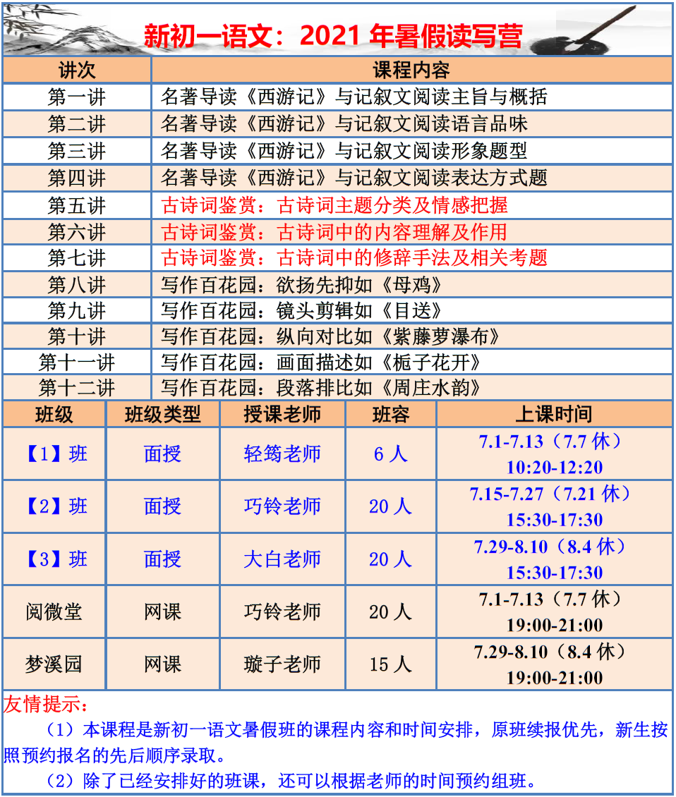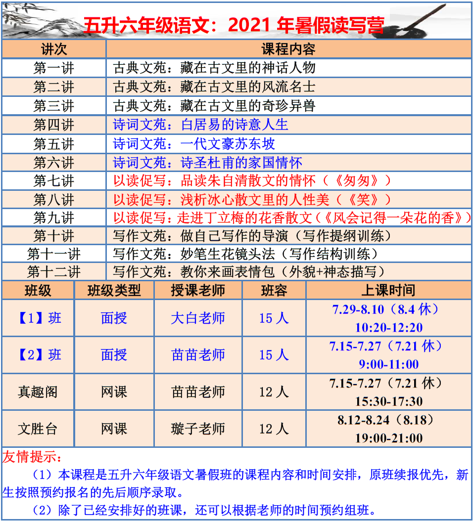 【巧夫子·网校】2021暑假班各年级语文直播课程大纲