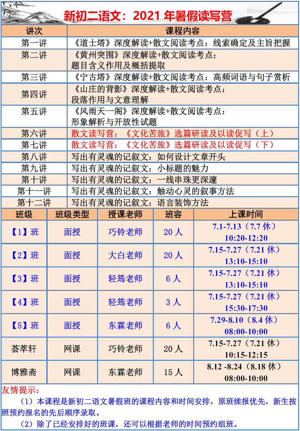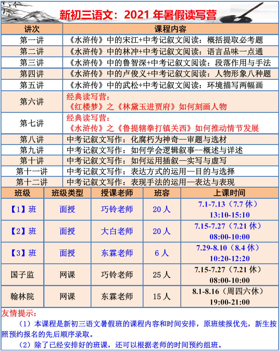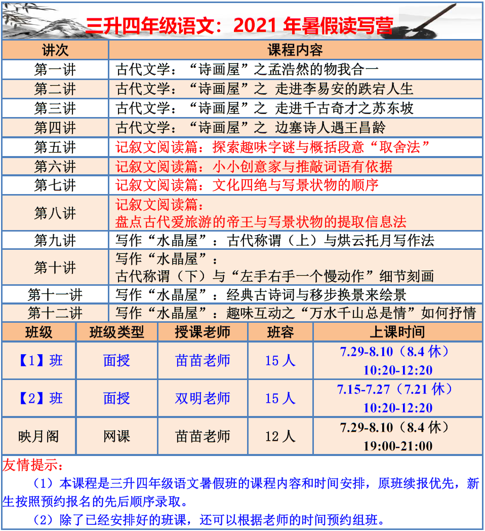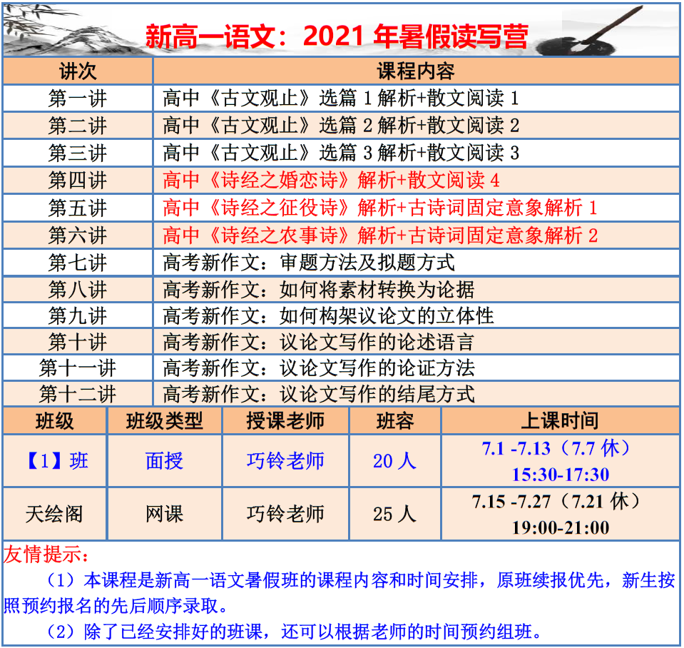 【巧夫子·网校】2021暑假班各年级语文直播课程大纲